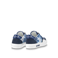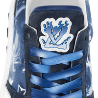 This edition of the LV Ollie sneaker comes in canvas with the bandana print which is a key theme of the season's ready-to-wear and leather goods. Suede calf-leather trim and tie-dye laces complement this design, which is finished with a supple rubber outsole. The tongue features the LV "fire" logo designed by Virgil Abloh. Detailed Features - Blue - Canvas - Tie-dye laces - Rubber outsole - LV Initials on the tongue - Louis Vuitton script signature on the back - Monogram Flowers on the outsole - Made in Italy