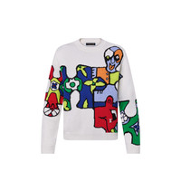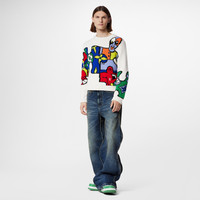 This playful warm knit crewneck made from certified wool has a relaxed fit with dropped shoulders. It features a graphic intarsia puzzle motif with cartoon characters and abstracted Monogram signatures in vibrant colors. An LV medallion on the bottom left adds a smart final signature. Detailed Features - 100% RWS-Certified Wool - Milky White - Regular Fit - Model wears a FR M size - Model measurements : chest 32’’ / 82 cm, height 6’’ / 183 cm - Made in Italy