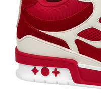 The LV Skate sneaker references a Nineties-inspired design first seen at Louis Vuitton's Fall-Winter 2022 men's show. Its elaborate, bicolor upper with Monogram Flower detailing combines technical mesh, calf leather and suede. This model is notable for its padded collar, technical double laces and bicolor rubber outsole decorated with Monogram Flowers. Detailed Features - Red - Mix of materials - Double laces - Rubber outsole - LV since 54 logo on the tongue and back - Vuitton signature on the side - Monogram Flowers on the side and outsole - Made in Italy