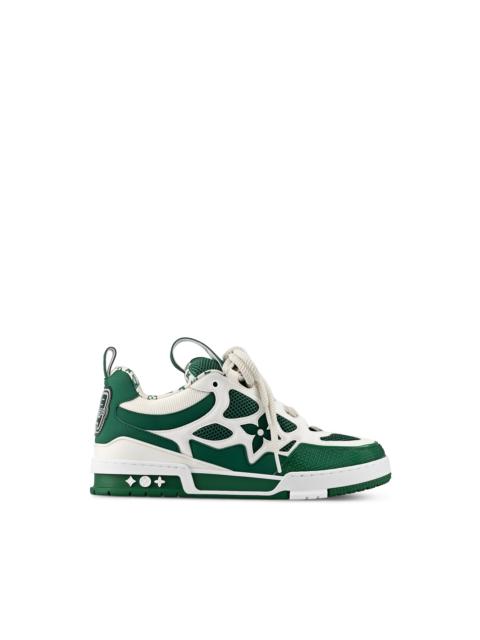 The LV Skate sneaker is revisited this season in a mix of materials, including technical mesh. The design references Nineties skate shoes and features a technical lining with a Monogram print and extreme padding for optimum comfort. This bicolor model incorporates a Monogram Flower on the side and three Monogram Flowers on the outsole. - Yellow - Mix of materials of technical mesh and plain calf leather - Double laces - Monogram-printed technical lining - Rubber outsole - LV Vuitton signature on the tongue - Monogram Flowers on the side and outsole - Vuitton since 1854 logo on the back - LV Initials back loop - Made in Italy