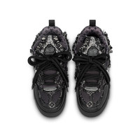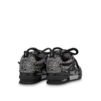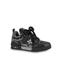 This exceptional edition of the LV Skate sneaker combines Monogram denim with sparkling Swarovski™ crystals and technical mesh. This Nineties-inspired design is characterized by its padded collar and tongue, which features an LV since 54 logo, referring to 1854, when Louis Vuitton was founded. Technical double laces and a bicolor rubber outsole complete this model. Detailed Features - Black - Swarovski™ crystals and Monogram denim - Double laces - Rubber outsole - LV since 54 logo on the tongue and back - Monogram Flowers on the side and outsole - Made in Italy