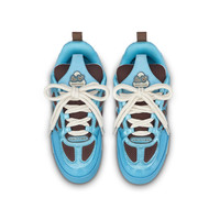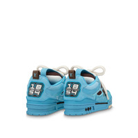 The LV Skate sneaker is revisited this season in a mix of materials, including mesh and metallic calf leather. This Nineties-inspired model features extreme padding on the collar and tongue, as well as technical double laces. It is signed with an oversized Monogram Flower on the side, while the bicolor rubber outsole is also decorated with Monogram Flowers. Detailed Features - Blue - Mesh and metallic calf leather - Double laces - Rubber outsole - LV since 54 logo on the tongue and back - Monogram Flowers on the side and outsole - Made in Italy