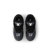 The LV Trainer Maxi sneaker reinterprets the iconic LV Trainer sneaker with a fashionable, oversized fit. This exceptional interpretation is covered with glittering Swarovski™ crystals and features Men's Creative Director Pharrell Williams' P initial, as well as the Vuitton signature, in lighter-colored crystals on the side. This model is finished with thick textile laces. - Black - Swarovski™ crystals - Textile laces - Rubber outsole - LV Initials on the tongue, side and back - Pharrell Williams P initial on the side - Vuitton script signature on the side - Monogram Flowers on the outsole - Made in Italy