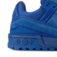 The LV Trainer Maxi sneaker reinterprets the cult LV Trainer sneaker with a fashion-forward, oversized fit. This version comes in alligator-printed nubuck calf leather in a bold color palette inspired by Louis Vuitton's Spring-Summer 2024 show by Pharrell Williams. The rubber outsole, which is decorated with Monogram Flowers, is color-matched to the upper for a total look. - Blue - Alligator-printed nubuck calf leather - Technical laces with stopper - Rubber outsole - LV Initials on the tongue, side and back - Vuitton signature on the side - Monogram Flowers on the outsole - Made in Italy