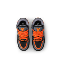 The LV Trainer Maxi sneaker is an on-trend, oversized version of the cult LV Trainer sneaker originally designed by Virgil Abloh. This version comes in lasered Monogram canvas with rubber LV Initials logos on the tongue, side and back. It is finished with thick textile laces embellished with Louis Vuitton signature beads. - Black - Lasered Monogram canvas - Textile laces with beads - Rubber outsole - LV Initials on the tongue, side and back - Vuitton signature on the side - Monogram Flowers on the outsole - Made in Italy