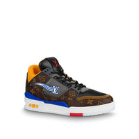 The iconic LV Trainer sneaker is crafted from Louis Vuitton's signature Monogram canvas with technical mesh and suede calf-leather trim. Inspired by classic basketball sneakers, it features a padded collar and gel-injected outsole for extra comfort. This model is complemented by flashes of colour and the new LV Initials signature on both sides. Detailed Features - Ebene - Monogram canvas, mesh and suede calf leather - 7 hours of stitching for one pair - Rubber outsole - New LV Initials signature on both sides - LV Initials on the tongue - Monogram Flowers on the outsole - Made in Italy