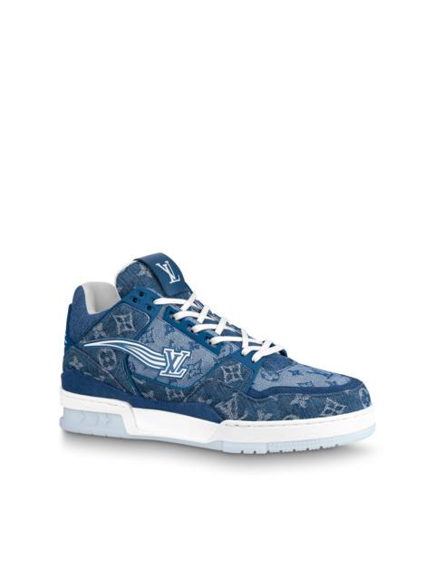 This version of the LV Trainer sneaker comes in blue Monogram denim, a key theme of the season. An icon of the Louis Vuitton shoe collection, it was designed by Virgil Abloh and inspired by basketball sneakers. It features a distinctive LV signature on the side, which was first seen at the Fall-Winter 2020 show. Detailed Features - Blue - Monogram denim - 7 hours of stitching for one pair - Rubber outsole - LV Initials on the tongue and side - Monogram Flowers on the outsole - Made in Italy