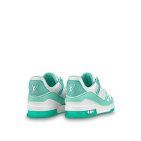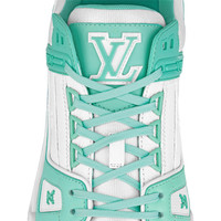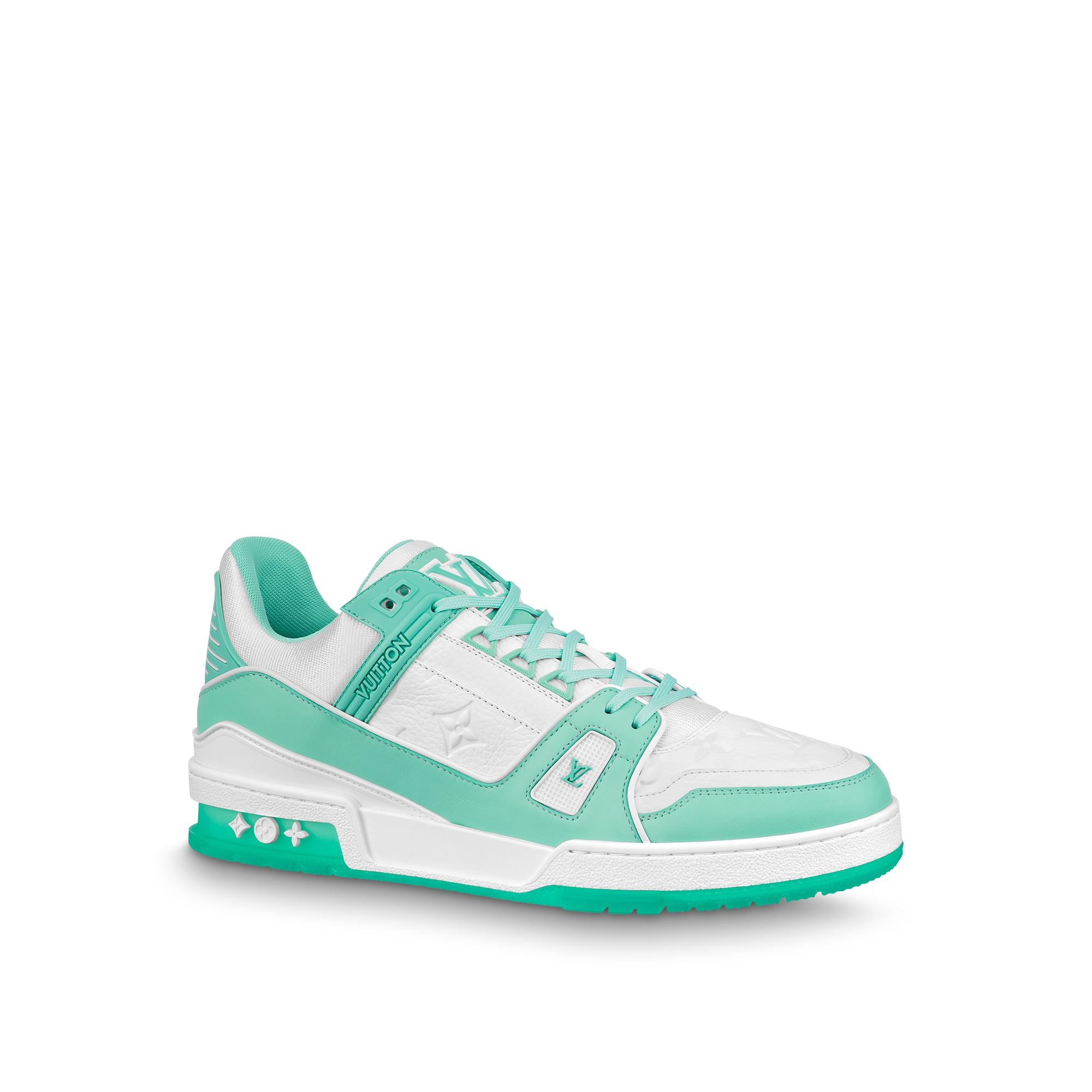 A favorite of Louis Vuitton Artistic Director Virgil Abloh, the LV Trainer sneaker is reinterpreted this season in Monogram-embossed calf leather. The bicolor design highlights the elaborate construction of this model, which takes seven hours to stitch. The innovative, gel-injected outsole is decorated with Monogram Flowers. Detailed Features - Green - Monogram-embossed calf leather - 7 hours of stitching for one pair - Rubber outsole - LV Initials on the tongue and side - Vuitton signature on the side - Monogram Flowers on the outsole - Made in Italy