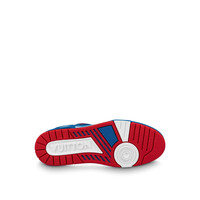 This red, white and blue version of the LV Trainer sneaker combines smooth and grained calf leather with technical textile. Designed by Louis Vuitton Artistic Director Virgil Abloh, this cult style was inspired by vintage basketball sneakers. The red and white outsole is decorated with Monogram Flowers and a blue insert. Detailed Features - White - Mix of materials - 7 hours of stitching for one pair - Rubber outsole - LV Initials on the tongue, back and side - Vuitton signature on the side - Monogram Flowers on the outsole - Made in Italy