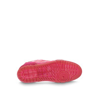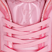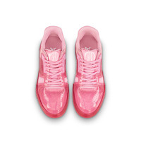 The LV Trainer sneaker is revisited in a mix of materials with transparent effects, which are a key theme of the season. The upper features a transparent Monogram material, while the color-matched rubber outsole is also transparent. This cult sneaker was designed by Artistic Director Virgil Abloh, whose hand-written Louis Vuitton signature appears on the side. Detailed Features - Pink - Mix of materials - 7 hours of stitching for one pair - Rubber outsole - LV Initials on the tongue and side - Louis Vuitton script signature on the side - Monogram Flowers on the outsole - Made in Italy