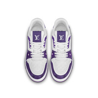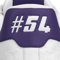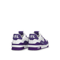 This version of the LV Trainer sneaker combines Monogram leather with calfskin embossed with the Mini Monogram pattern. Designed by Virgil Abloh, this iconic model was inspired by vintage basketball sneakers. Its elaborately constructed upper, which is notable for its rich detailing and Louis Vuitton signatures, takes seven hours to stitch. Detailed Features - Purple - Mini Monogram-embossed calf leather and Monogram leather - 7 hours of stitching for one pair - Rubber outsole - LV Initials on the tongue and side - Louis Vuitton script signature on the side - #54 signature on the back - Monogram Flowers on the outsole - Made in Italy