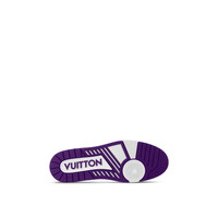 This colorful interpretation of the LV Trainer sneaker comes in Monogram denim and features an adjustable velcro strap over the laces. This cult model, designed by Virgil Abloh, was inspired by vintage basketball sneakers. Among its numerous signature details are Monogram Flowers on the strap and outsole, and an oversized Monogram Flower on the side. - Purple - Monogram denim - Adjustable velcro strap - 7 hours of stitching for one pair - Rubber outsole - Vuitton signature on the tongue - Monogram Flower on the side - Louis Vuitton script signature on the side - Monogram Flowers on the strap and outsole - Made in Italy