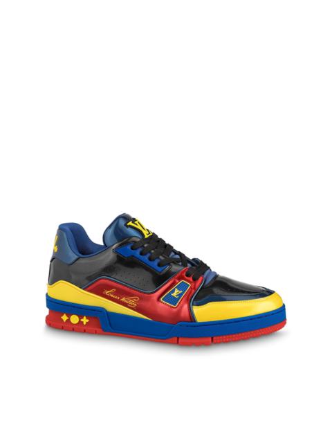 The LV Trainer sneaker is reinterpreted this season in multicolored patent canvas. An icon of the Louis Vuitton shoe collection, this model was designed by Artistic Director Virgil Abloh. Rubber detailing on the tongue and side features the LV Initials logo, while the outsole is debossed with Monogram Flowers. The Louis Vuitton script signature is printed on the side. Detailed Features - Black - Patent canvas - 7 hours of stitching for one pair - Rubber outsole - LV Initials on the tongue and side - Louis Vuitton script signature on the side - Monogram Flowers on the outsole - Made in Italy