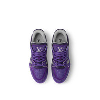 This exclusive edition of the iconic LV Trainer sneaker is entirely covered with sparkling Swarovksi™ crystals for an eye-catching look. The visual impact is further enhanced by the laces and technical rubber outsole, which are color-matched to the upper. Originally designed by Virgil Abloh, this model was inspired by vintage basketball sneakers. - Purple - Swarovksi™ crystals - Rubber outsole - LV Initials on the tongue, side and back - Vuitton signature on the side - Monogram Flowers on the outsole - Made in Italy