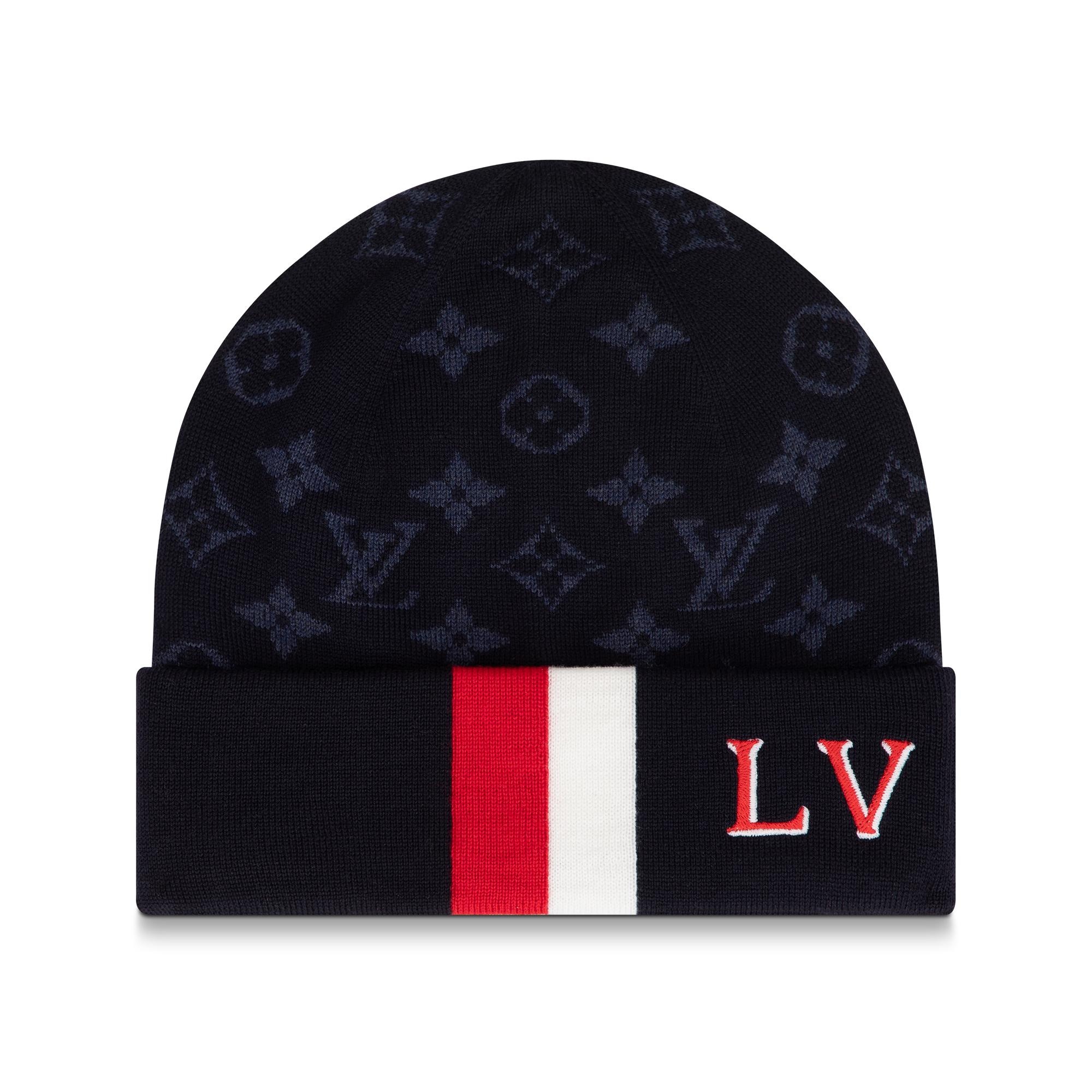 The LV Varsity Beanie sports a youthful design with a collegiate-inspired look. This casual hat features a Monogram pattern expertly knitted from luxurious pure wool that is both soft and warm. An embroidered LV signature sits alongside two contrasting stripes on the rib trim for an eye-catching touch. Detailed Features - Navy Blue - 100% wool - Monogram pattern - LV signature embroidery Length: 9.4 inches Height: 9.1 inches