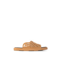 The LV Waffle mule is a fashion-forward style co-designed with Tyler. Its calf-leather upper features intricate cut-outs inspired by a waffle, while the LV Initials logo, playfully reworked by Tyler, recalls melting butter. This model is finished with a comfortable rubber outsole with the Louis Vuitton script signature on the tread. - Cognac Brown - Calf leather - Rubber outsole - LV Initials on the upper - Louis Vuitton script signature and LV Initials on the tread - Made in Italy