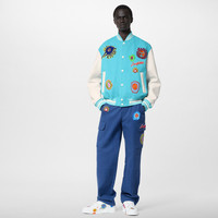 This varsity blouson from the exclusive Louis Vuitton x Yayoi Kusama collaboration brings a playful twist to this contemporary menswear wardrobe piece. The bright, summery blue of the canvas body is embellished with delicately embroidered patches referencing this collection’s "Faces" theme, featuring colorful images from the artist's “My Eternal Soul" series of paintings begun in 2009. White calf leather sleeves and an embroidered Louis Vuitton patch on the left chest complete this refined piece. Detailed Features - 50 % Bull Leather, 50% Cotton - South Sea - Regular Fit - Made in Italy