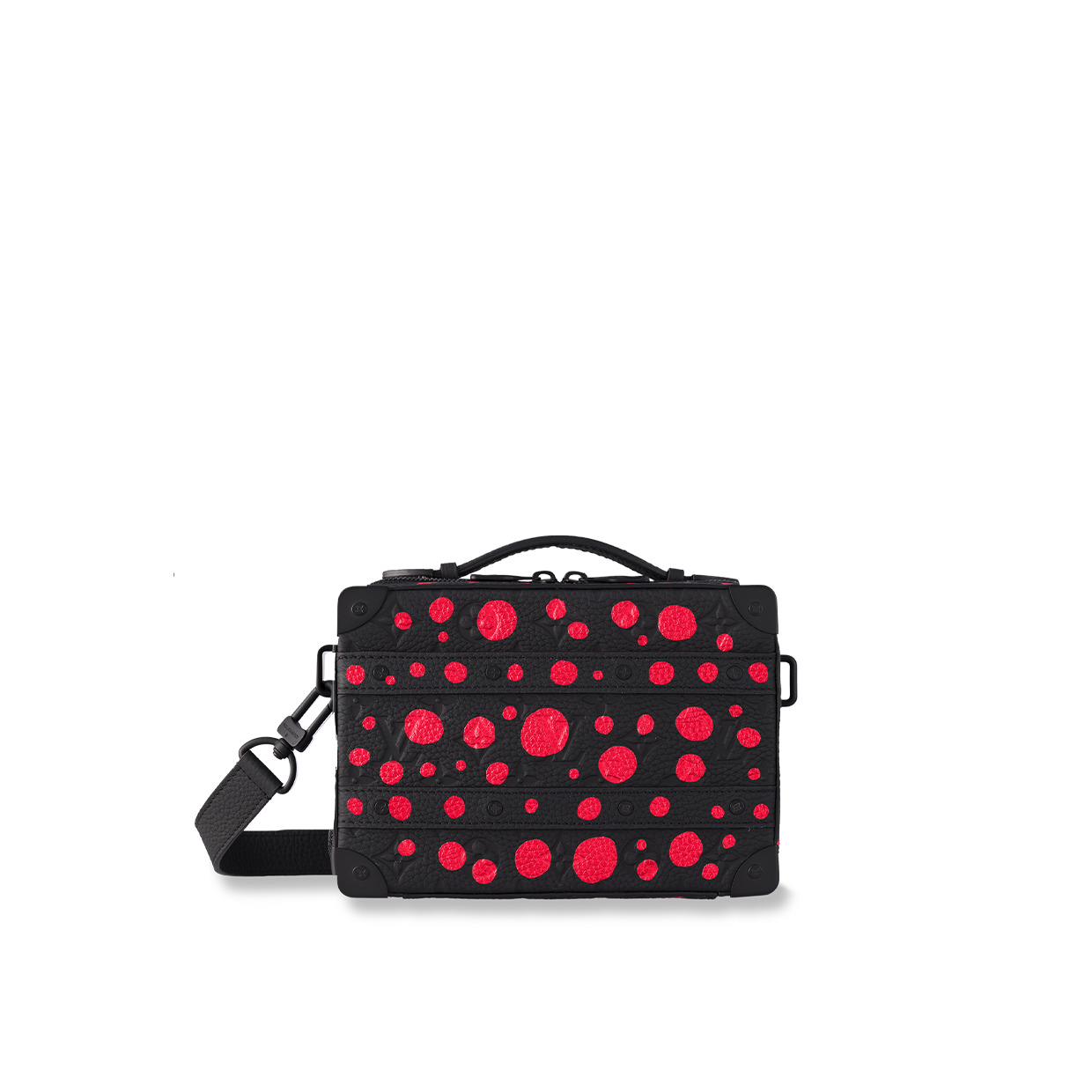 Part of the new Louis Vuitton x Yayoi Kusama collection, the LVxYK Handle Soft Trunk is a double celebration, paying tribute to the House’s trunk-making heritage and the vision of a world-class artist. Taurillon cowhide embossed with the iconic Monogram pattern is enlivened with bold red dots, echoing the dazzling dotted motifs that characterize Kusama’s artworks. A distinctive, creative look for an elegant and functional bag. Detailed Features - Black and red - Taurillon Monogram cowhide with Infinity Dots print - Cowhide-leather trim - Cotton and polyester lining - Black hardware - Inside LVxYK signature - Front flat pocket - Inside flat pocket - Strap:Removable, adjustable - Strap drop: 17.5 inches - Strap drop max: 22.8 inches - Handle:Single Length: 8.5 inches Height: 5.9 inches Width: 2.8 inches
