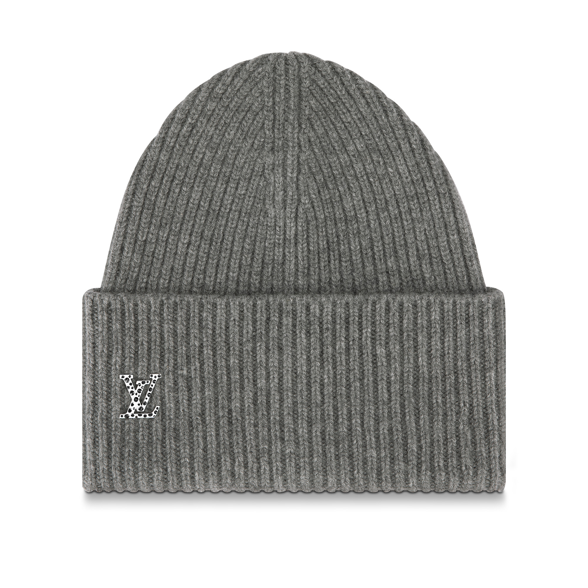 The LV x YK Infinity Dots beanie is fashioned from pure cashmere for ultimate softness and warmth. It belongs to the Louis Vuitton x Yayoi Kusama collection, the House's second major collaboration with the Japanese artist, and is signed with an LV Initials accessory decorated with her iconic black-on-white dots. Detailed Features - Gray - 100% cashmere - LV Initials signature with dots - Dry clean only Length: 9.8 inches Height: 9.8 inches