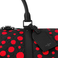This classic travel bag gets an arty look for the exclusive new Louis Vuitton x Yayoi Kusama collaboration. As a child, the revered Japanese artist had a vision of dots, and the motif became a recurring theme in her artworks, a symbol of infinity. For the LVxYK Keepall 50, sumptuous Taurillon Monogram cowhide is printed with a galaxy of bright red dots, turning this large-capacity bag into an exceptional collector’s piece. Detailed Features - Black and red - Taurillon Monogram cowhide with Infinity Dots print - Cowhide-leather trim - Cotton and polyester lining - Black hardware - Inside LVxYK signature - Large capacity - Double zipped closure with padlock - Inside zipped pocket - Leather name tag - Strap:Removable, adjustable - Strap drop: 14.2 inches - Strap drop max: 19.7 inches - Handle:Double Length: 19.7 inches Height: 11.4 inches Width: 9.1 inches
