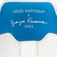The LV x YK LV Trainer sneaker is a special edition belonging to the Louis Vuitton x Yayoi Kusama collection. Crafted from calf leather, it is printed with the Infinity Dots motif for which the avant-garde Japanese artist is renowned. The signature of the collaboration is embossed at the back of the sneaker. Designed by Virgil Abloh, this model is an icon of the Louis Vuitton shoe collection. Detailed Features - Yellow - Calf leather - 7 hours of stitching for one pair - Rubber outsole - LV Initials on the tongue and side - Louis Vuitton x Yayoi Kusama 2023 signature on the back - Monogram Flowers on the outsole - Made in Italy