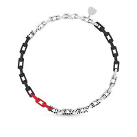 The LV x YK Monogram Chain necklace is crafted from silver-tone metal engraved with the Monogram pattern. Several of its chunky links are decorated with enamel dots as part of the Infinity Dots theme of the Louis Vuitton x Yayoi Kusama collection, the second major collaboration between the House and the Japanese artist. This statement piece is finished with a pumpkin charm, reprising one of the artist's favorite motifs. Detailed Features - Black - Length: ~21.7 inches / 55 cm - Metal with silver-color finish - Pumpkin charm - Monogram-engraved links
