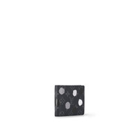 The LVxYK Multiple wallet features an upbeat print on Monogram Eclipse canvas for the new Louis Vuitton x Yayoi Kusama collection. A forerunner of the avant-garde since the 1960s, the venerated Japanese artist is known for her emblematic use of dots. This pattern reproduces her hand-painted dots using a sophisticated screen-printing technique with a realistic 3D effect. A practical accessory becomes an artistic expression. Detailed Features - Black and silver - Monogram Eclipse coated canvas with 3D Painted Dots print - Cowhide-leather trim - Leather lining - Inside LVxYK signature - 3 card slots - 2 inside pockets - 2 compartments for banknotes and tickets - 2 side slots for receipts Length: 4.5 inches Height: 3.5 inches Width: 0.6 inches