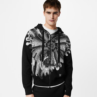 This zipped-through hoodie from the exclusive Louis Vuitton x Yayoi Kusama collaboration features the artist’s iconic Psychedelic Flower motif. Here the flower is incorporated into the luxurious black merino knit with a jacquard technique. A double puller zip and knitted ribs on the cuffs and bottom hem complete this finely crafted piece, while an LV medallion featuring the artist’s emblematic dots adds a discreet final signature. Detailed Features - 95% Wool, 5% Polyamide - Black / White - Regular Fit - Made in Italy