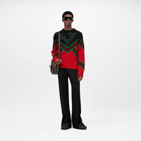 This colorful piece channels the sporty vibe on display this season. Crafted in a regular fit from responsibly-sourced wool, it is signed with an LVV patch signature on the front. The red and black panels are separated by intarsia, with knitted tapes applied on the top. Detailed Features - 100% Wool - Multicolor - Regular Fit - Model wears a FR M size - Model measurements : chest 32’’ / 82 cm, height 6'3’’ / 189 cm
