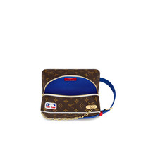 The glamourous Cloakroom Dopp Kit bag is Virgil Abloh’s love letter to the NBA. Made from iconic Monogram coated canvas, it’s finished with an NBA patch, a lining in NBA blue, as well as an adjustable leather handle also in NBA blue. The gold-color chain evokes the league’s championship trophy. Detailed Features - Monogram coated canvas - Textile lining - Cowhide-leather trim - Main zipped compartment - Adjustable leather handle - Inside zipped pocket - This reference is either Made in France, Spain, Italy or in the US. - Handle:Single Length: 5.9 inches Height: 9.4 inches Width: 5.9 inches