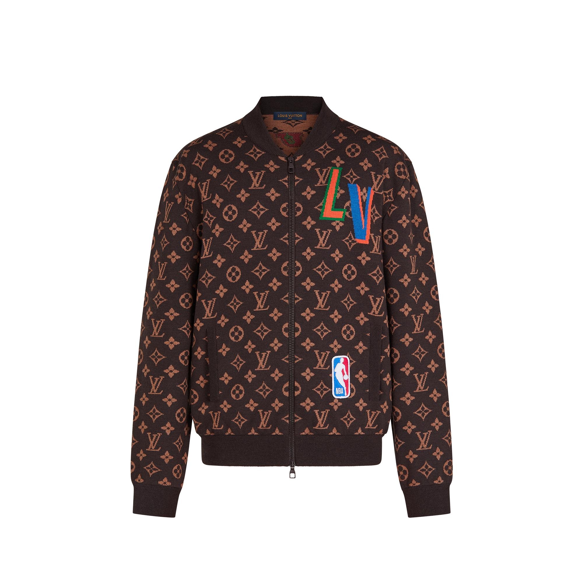 This casual piece combines NBA-inspired details with a classic Louis Vuitton signature. It is crafted in a regular fit from responsibly-sourced merino wool, with an all-over Monogram jacquard motif. LV lettering adorns the front and back in intarsia, while an embroidered NBA logo signs the bottom front. Details include side pockets and knitted ribs. Detailed Features - 100% Wool - Brown Monogram - Regular Fit - Model measurements : chest 32’’ / 82 cm, height 6’’ / 183 cm - Model wears a FR M size - Made in Italy
