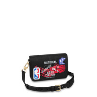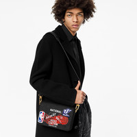 Made from cowhide leather embossed with the Monogram pattern, the Studio Messenger bag features prints and patches bringing together design cues from Louis Vuitton and the world of basketball, especially NBA championship jackets with their graphic motifs. Very functional, this messenger bag has a detachable leather strap and a magnetic closure. Detailed Features - Black - Cowhide leather - Textile lining - Cowhide-leather trim - Gold-color hardware - Signature strap - Front flap with magnetic closure - Large main compartment - Inside flat pocket - Outside flat pocket - D-ring on the strap - Strap:Removable, adjustable - Strap drop: 15.4 inches - Strap drop max: 23.2 inches - This reference is either Made in France, Spain, Italy or in the US. Length: 9.3 inches Height: 5.5 inches Width: 2 inches