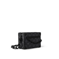 Created by Virgil Abloh for the Spring-Summer 2019 show, the Mini Soft Trunk bag is made from Monogram Eclipse canvas and boasts a matte-black chain in resin. This boxy yet elegant accessory evokes the House’s trunk making heritage. It can be worn over the shoulder or carried as a clutch. Detailed Features - Monogram Eclipse coated canvas - Textile lining - Cowhide-leather trim - Matte-black hardware - Outside zipped pocket - Inside flat pocket - Strap:Not removable, adjustable - Strap drop: 16.5 inches - Strap drop max: 22.8 inches - The reference is either made in France, Spain, Italy or in the US. Length: 7.3 inches Height: 5.1 inches Width: 3.1 inches