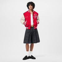 American tradition meets Louis Vuitton savoir-faire in this vibrant red varsity blouson inspired by Pharrell Williams’ past as a member of the drumline at Princess Anne High School in Virginia. This iconic piece from the SS24 Show features an embossed tonal Damier on the white calfskin sleeves, a pearl-embroidered Louis Vuitton logo on the back and a crystal-embroidered PA patch on the chest that renders homage to Williams’ story. - Regular Fit - ‘Louis Vuitton Lovers presents’ embroidered on the back with pearls - Embossed Damier on calfskin sleeves - Handwritten-effect Louis Vuitton embroidery on chest - PA patch with embroidered crystals on chest - Piped pockets in contrasting leather - Wool body - Striped knitted ribbed collar, cuffs and bottom hem - Bright Red - 100% Calfskin - Made in Italy