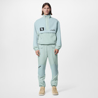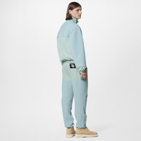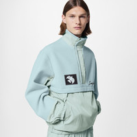 This retro anorak in a fresh pale blue combines luxurious bouclette wool with technical fabric. It features a half front zip hidden behind a wide technical placket, sporty piped pockets, and a drawstring waist. Signatures include a handwritten-effect embroidered Louis Vuitton on the right chest and an embroidered LV Dove label on the left. Detailed Features - 100% Wool - Ether - Regular Fit - Model wears a FR 50 size - Model measurements : chest 36’’ / 92 cm, height 6' 2½’’ / 189 cm - Made in Italy