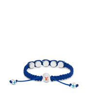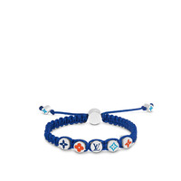 For the summer season, here is a fashionable, colourful bracelet made from braided nylon set with enamelled LV and Monogram Flower beads. This vibrant signature piece looks especially stylish when worn in a stack with others, for a relaxed, breezy vibe. The bracelet makes a delightful gift for Louis Vuitton devotees. Detailed Features - Dark Blue - One size - Nylon - Silver-colour hardware - Enamel - Made in Italy