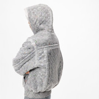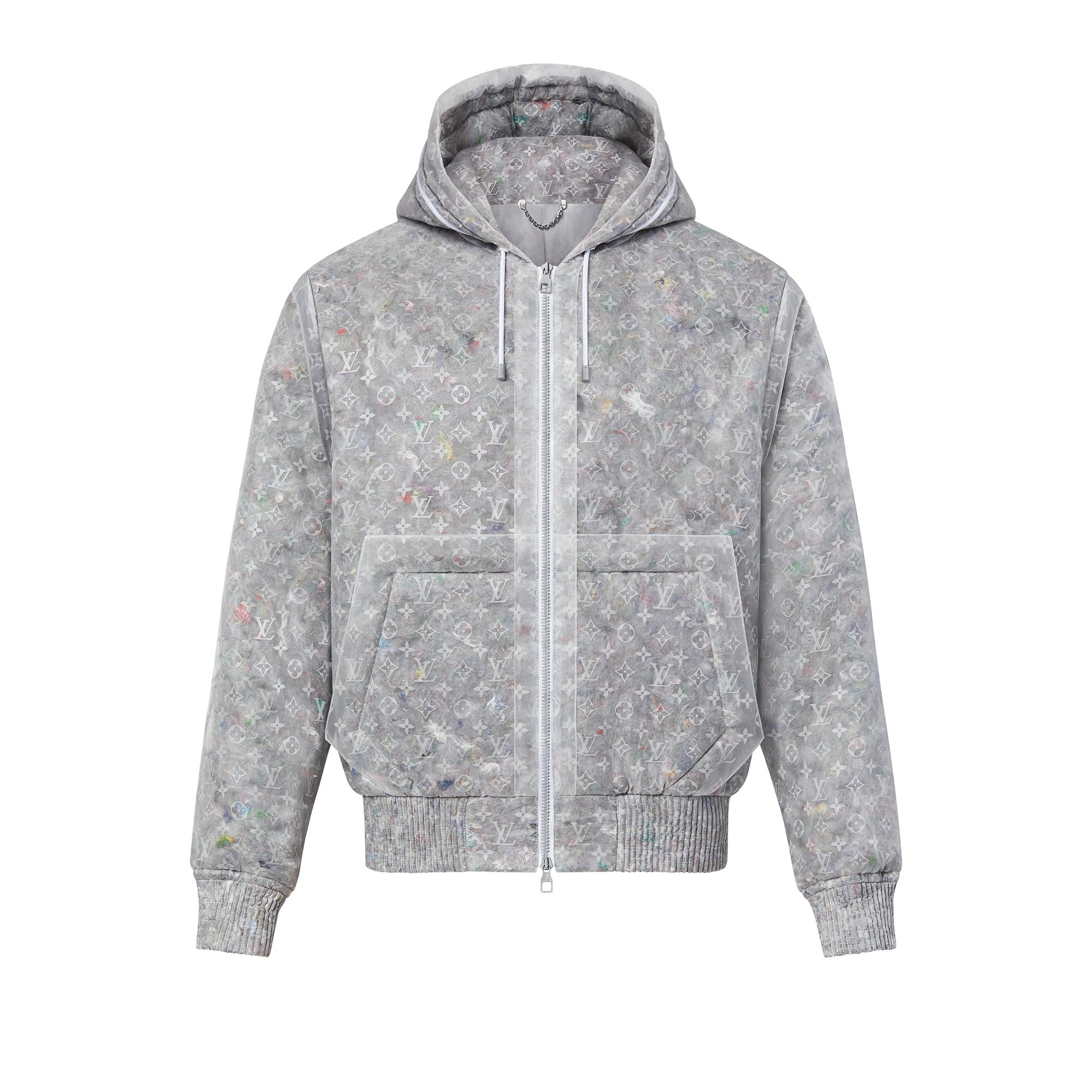 This fitted piece revisits a classic casual shape in organza, with subtle interplays of transparency. The fabric is printed with a Monogram motif, then filled with recycled padding for a structured look. The blouson features cannetage ribs in smocked fabric at the cuffs and waist, a kangaroo pocket and a gray lining. Detailed Features - 100% Polyester - Translucent - Casual shape - Model wears a FR 50 size - Model measurements : chest 34’’ / 86.5 cm, height 6'1.5’’ / 186 cm - Made in France