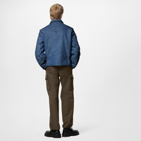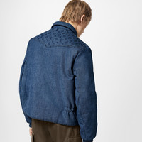 The minimalist lines of this quilted denim blouson offer a crisp contrast to the Monogram-embossed shoulder panels and three-dimensional flap pockets on the front. The shirt collar has a hidden button system that can transform it into a chimney collar, while ribbed cuffs add a snug finish to the sleeves. Detailed Features - 99% Cotton, 1% Elastane - Indigo - Regular Fit - Model wears a FR 50 size - Model measurements : chest 34’’ / 86 cm, height 6’’/ 187 cm - Made in France