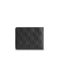 In refined Damier Infini leather, the slim shape of the Multiple Wallet has timeless appeal. It can be discreetly carried in a pocket, and is elegantly finished with a supple cowhide leather lining. Detailed Features - Damier Infini Leather - Cowhide Leather lining - 3 credit cards slots - 2 compartments for bills and tickets - 2 side slots for receipts - 2 business cards slots - The reference is either made in France, Spain, Italy or in the US. Length: 4.5 inches Height: 3.5 inches Width: 0.6 inches