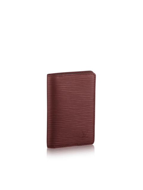 Sophisticated and supple Epi leather is the perfect material for the Multiple Wallet. Very compact but still functional with numerous pockets and slots, it fits easily into any pocket. Detailed Features - Epi Leather - Mat Cross grain Leather lining - 3 credit cards slots - 2 compartments for bills and tickets - 2 side slots for receipts - 2 business cards slots - The reference is either made in France, Spain, Italy or in the US. Length: 4.5 inches Height: 3.5 inches Width: 0.6 inches