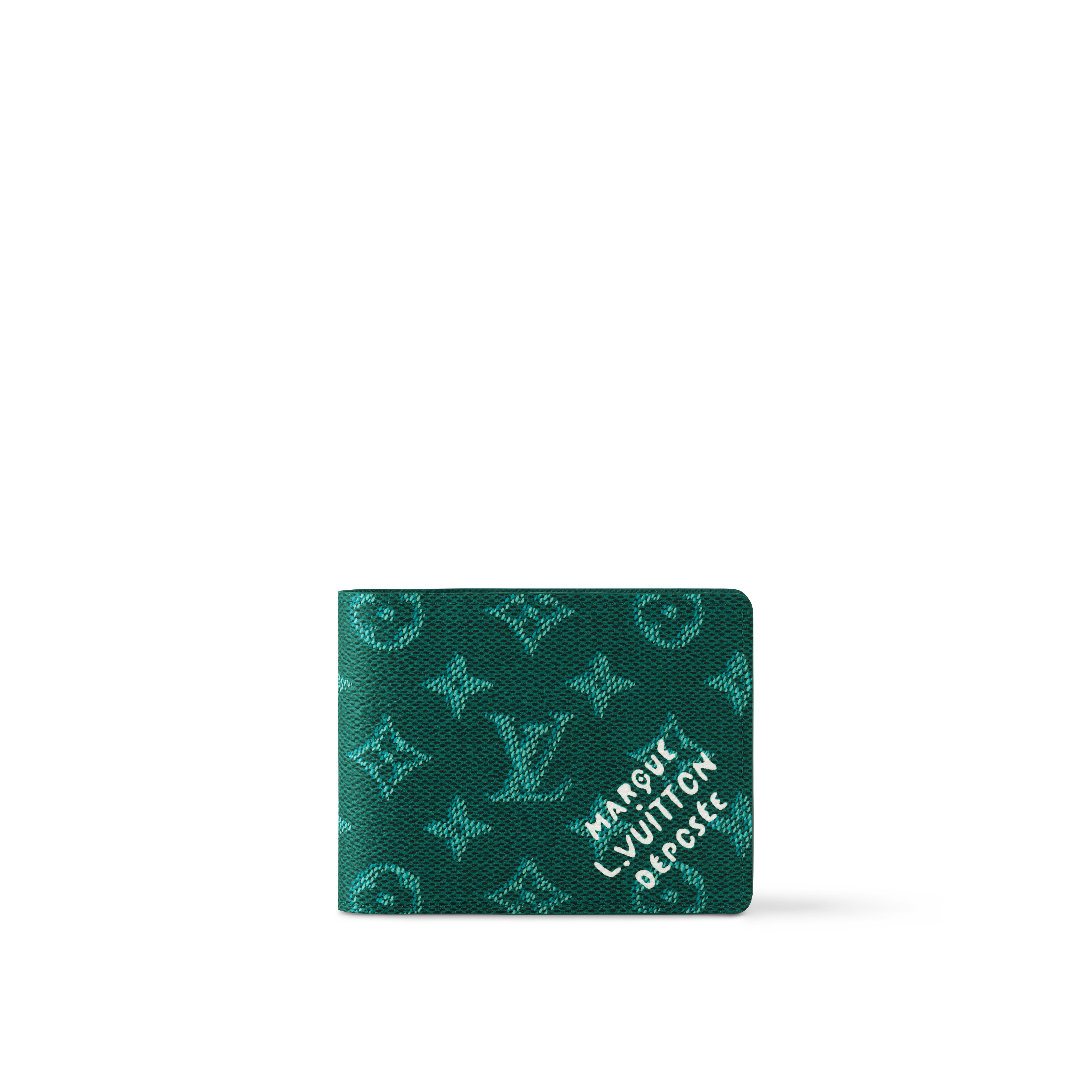 Pharrell William’s Monogram Heritage canvas brings a contemporary feel to the Multiple Wallet. This new version of the classic House pattern integrates details found on the original Damier motif, including the warp and weft pattern, as well as the “Marque L.Vuitton Deposee,” which is prominently displayed on the side of this wallet. Length: 4.5 inches Height: 3.5 inches Width: 0.6 inches - Green - Monogram Heritage coated canvas - Cowhide-leather trim - 3 card slots - 2 inside pockets - 2 compartments for bills and tickets - 2 side slots for receipts This reference is either Made in France, Spain, Italy or in the US.