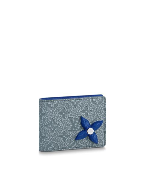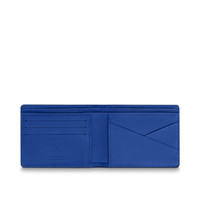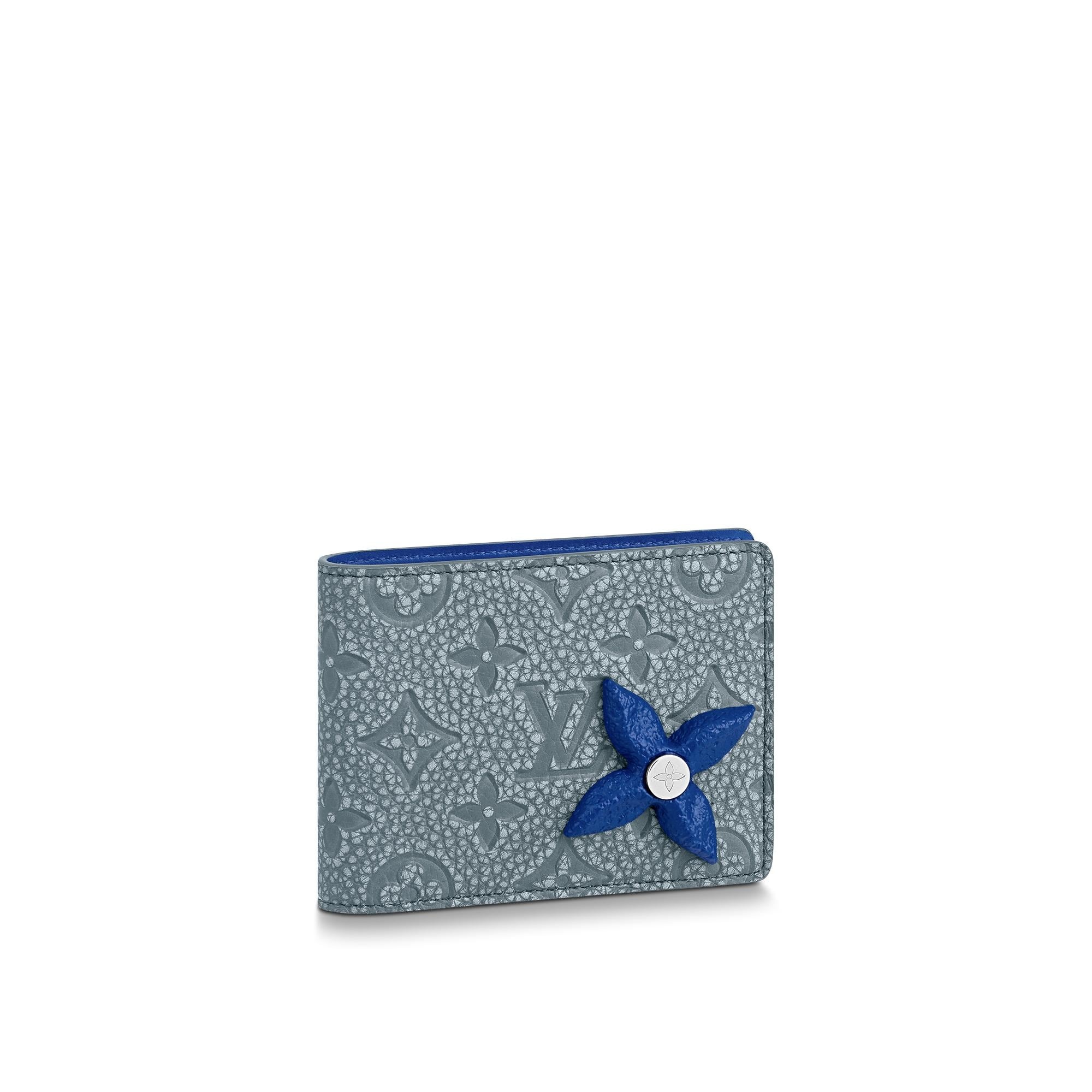 The Multiple wallet gets a colorful infusion of youthful energy with the “Climbing” theme, designer Virgil Abloh’s ode to boyhood for Fall-Winter 2022. Granite gray Taurillon Monogram cowhide with a crafted spray effect for a mineral-like finish is adorned with a climbing hold in the same shade of blue as the lining. A creative and practical everyday accessory. Detailed Features - Granite - Taurillon Monogram embossed cowhide leather - Cowhide-leather lining - Silver-color hardware - Acrylic climbing hold - 3 card slots - 2 compartments for bills and tickets - 2 inside pockets - 2 side slots for receipts - This reference is either Made in France, Spain, Italy or in the US. Length: 4.5 inches Height: 3.5 inches Width: 0.6 inches