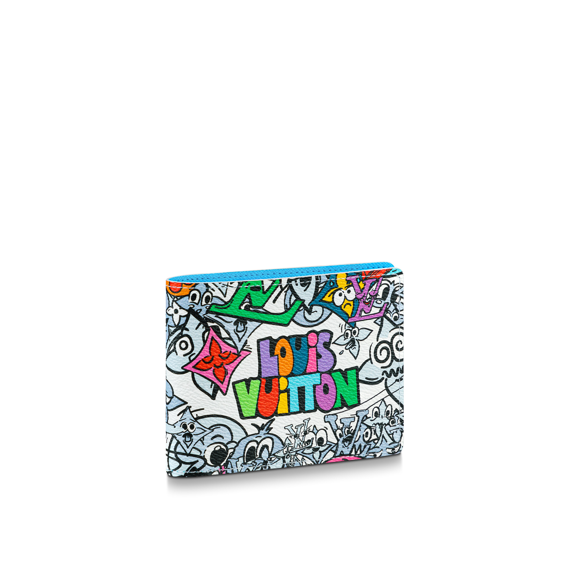The Multiple Wallet takes on a lighthearted allure in Monogram Comics coated canvas, with a horde of cartoon characters reinterpreting the Monogram Flowers and the LVs. As functional as it is fun, it features a variety of card slots and compartments for cash and papers. Detailed Features - Blue - Monogram Comics coated canvas - Cowhide-leather trim - Cowhide-leather lining - 3 card slots - 2 inside pockets - 2 compartments for bills and tickets - 2 side slots for receipts Length: 4.5 inches Height: 3.5 inches Width: 0.6 inches