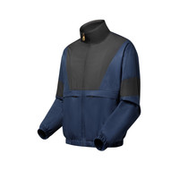This lightweight tracksuit top is an easy outer layer with an athletic vibe. The navy blue technical fabric is distinguished with an embossed allover Damier motif, while contrasting black panels add sporty accents and a gold-toned zipper adds a sophisticated twist. Matching pants make a relaxed yet stylish set ideal for traveling. - Regular fit - Embossed Damier on navy blue technical fabric - Zipper fastening with LV-engraved puller - Tall collar - 2 concealed front zipper pockets - Elasticated waist and cuffs - Black - 100% Recycled polyester - Made in Italy