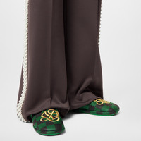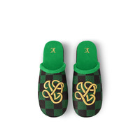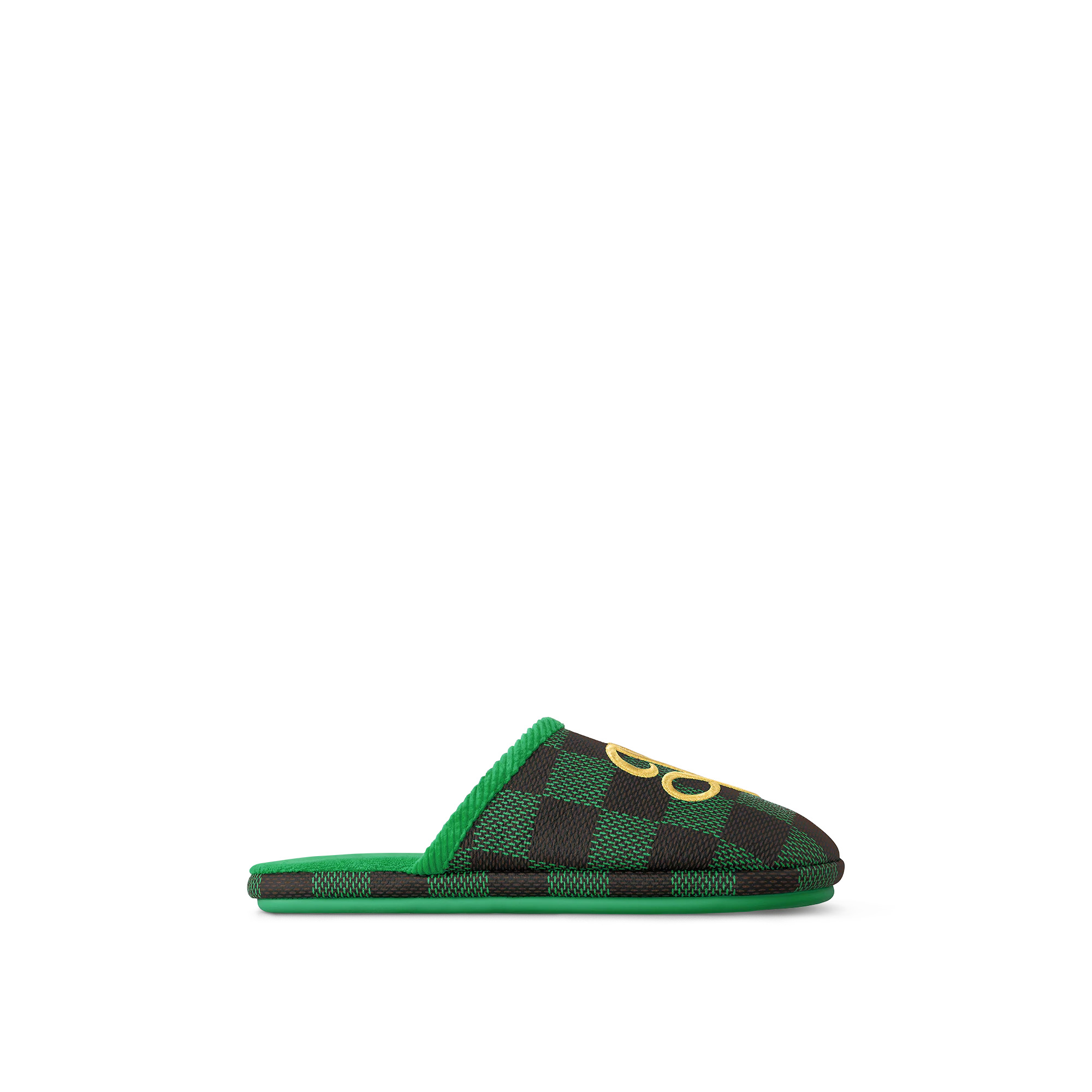 The LV Palace slipper comes in Damier grained calf leather, which replicates the look of Damier canvas. The design is elevated by touches of color and the LV Initials, which are embroidered on the upper. This extremely comfortable model, inspired by hotel slippers, has a memory foam insole and a rubber outsole with the Damier pattern. - Green - Damier grained calf leather - Memory foam insole - Rubber outsole - LV Initials on the upper and insole - Damier pattern on the tread - Made in Italy