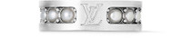 Meticulously crafted and engraved, the Pearls Ring is made from silver-tone metal with a masculine, brushed finish. Pearl-like white resin beads are inset in this substantial piece, surrounding the central etched LV Initials signature. Striking on its own, the ring can also be worn along with the matching ear cuff, earrings and necklace for a statement effect. DESCRIPTION - Pearls Ring DETAILS AND CARE MATERIAL: Brass COLOR: white COUNTRY OF MANUFACTURE: Italy PRODUCT CODE: LVUA6TQ5WHTS2AAA00