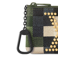 The handsome and practical Pochette Cles key holder is made from Damoflage coated canvas, imagined by Creative Director Pharrell Williams for the Spring-Summer 2024 Collection. What at first looks to be pixelated camouflage proves, on closer inspection, to be a reimagining of the House’s emblematic Damier print. Length: 4.7 inches Height: 2.8 inches Width: 0.6 inches - Green - Damoflage coated canvas - Leather trim - Textile lining - Black-color hardware - Zipped closure - Key ring - Chain with hook This reference is either Made in France, Spain, Italy or in the US.