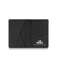 As part of his second collaboration with Louis Vuitton for Pre-Spring 2022, the Japanese streetwear designer Nigo brings his Monogram Drip look to the bestselling Pocket Organizer. Black denim printed with the iconic Monogram pattern “drips” over fine-grained Taurillon leather in elegant black, highlighted with a red signature heart. An eye-catching new take on a classic wallet. Detailed Features - Black Monogram denim and Taurillon leather - Cowhide leather trim - Textile lining - Signature heart print - 3 card slots - 5 inside pockets - This reference is either Made in France, Spain, Italy or in the US. Length: 3.1 inches Height: 4.3 inches Width: 0.4 inches