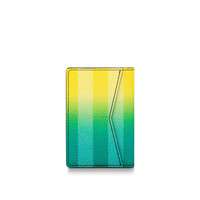 This Pocket Organizer wallet is made from gradient green Damier Stripes canvas, in which the iconic Damier checkerboard squares are re-arranged into stripes. This small wallet is signed with a new Louis Vuitton leather patch, inspired by the lettering on the sides of the House’s mid-century delivery trucks. Detailed Features - Gradient Green - Damier Stripes coated canvas - Cowhide-leather trim and label - Cowhide-leather lining - 3 card slots - 5 inside pockets - Outside pocket - This reference is either Made in France, Spain, Italy or in the US. Length: 3.1 inches Height: 4.3 inches Width: 0.4 inches