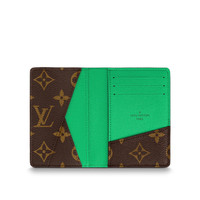 This new version of the Pocket Organizer brings a splash of bright color to a classic wallet. Louis Vuitton’s emblematic Monogram Macassar canvas is paired with cowhide in an exuberant shade of green – a clever reference to the palette of designer Virgil Abloh. Inside, an array of card slots and compartments makes it a practical everyday accessory. Detailed Features - Monogram Macassar coated canvas and Minty Green cowhide leather - Cowhide-leather trim - Textile lining - 3 card slots - 5 inside pockets - Outside flat pocket - This reference is either Made in France, Spain, Italy or in the US. Length: 3.1 inches Height: 4.3 inches Width: 0.4 inches